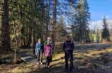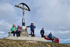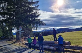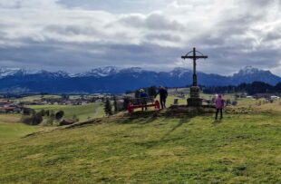 Geplant war eigentlich eine knackige Winterwanderung mit Frost und viel Schnee, doch die Wettermacher lieferten fast warmes und teilweise sonniges Frühlingswetter. Der Winter ist halt auch nicht mehr so richtig planbar. So wanderten wir gemütlich vom Roßhauptener Wettebad nach Nordwesten zwischen Stockachbichel und Wasenmoos über den Brettlesweg zu einem Brückerl ins Tal der Schmutter. Am anderen Ufer ging es nun nach Osten unterhalb der Kellerhalde vorbei am Trinkwasser Reservoir zum einsamen Jägerhäusl. Hier schwenkten wir nach Süden und stiegen über mittelsteile Hänge zum Gipfel des Fahrenbergs. Beim Gipfelbucheintrag waren wir mächtig erstaunt, dass den ersten Bucheintrag vor Jahren unser Bernhard Lippert geschrieben hat. Nach einer flinken Brotzeit mit Panoramabestimmung ging es nun durch die Hölle hinunter Richtung Riedle und zurück zum Wettebad. Dort öffnete sich ein Kofferraum für´s „Tischlein deck dich“ mit Krapfen und Glühwein. Nach Stärkung und Ratsch ging es dann wieder zufrieden nach Hause.