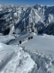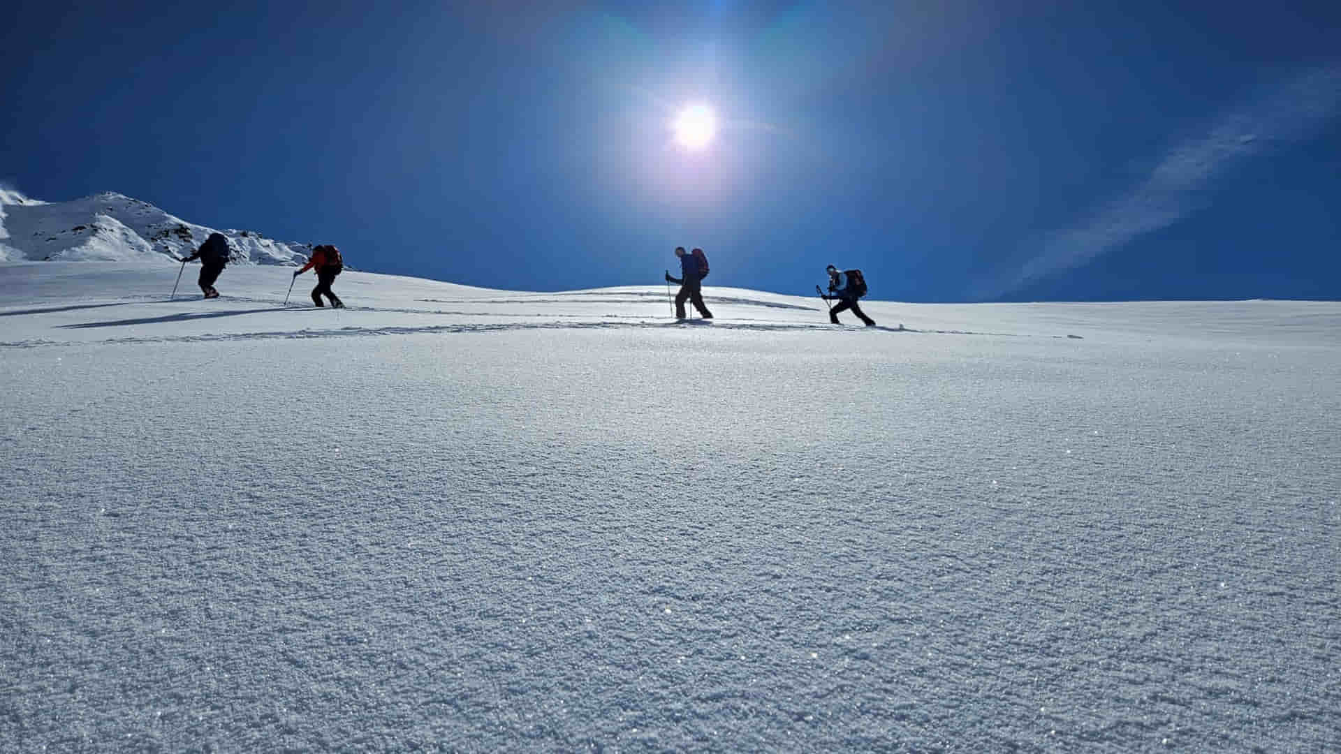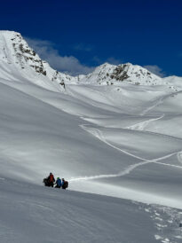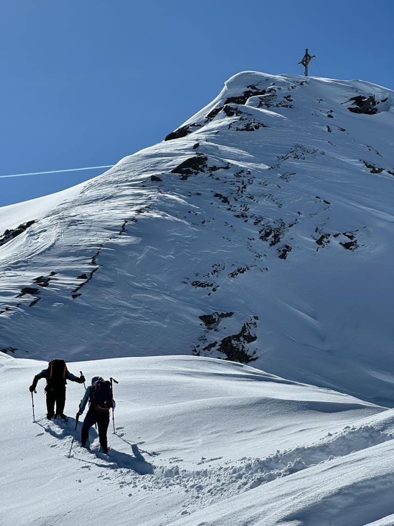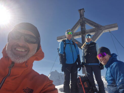 Die Pizzinihütte im Ortlergebiet war schon gebucht, alles schien klar zu sein, doch die Wetteraussichten und Lawinenlageberichte wurden immer schlechter. So beschlossen wir zwei Tage zuvor, die Tour zu ändern und nördlich vom Alpenhauptkamm zu bleiben. Das gestaltete sich aber schwieriger als gedacht. Nach unzähligen Telefonaten fanden wir auf der Potsdamerhütte ein Plätzchen für eine Nacht. So starteten wir am Freitag, den 8.3.202, um 6 Uhr früh bei bestem Wetter ins Sellrain. Die ersten vier Kilometer hieß es Ski tragen bis zum Bergheim Fotsch. Ab hier war die Straße nicht mehr geräumt und wir konnten die Ski anlegen. Wir folgten dem Fotscher Bach und einigten uns, auf den Wildkopf mit 2719 m zu gehen. Es war frisch gespurt und so gewannen wir rasch an Höhe … leider war nur bis zu einer Höhe von ca. 2500 m gespurt. In einem Spitzkehrenfestival ging es auf den Grat und von dort ohne Ski weiter zum Gipfel. Hier bewies Frank Steherqualitäten und quälte sich durch den teils hüfthohen Schnee. Zurück am Skidepot machten wir erst Brotzeit und fuhren dann bei bestem Pulver ab. Nach kurzem Gegenanstieg zur Hütte waren dann 1700 hm geschafft. Wir verbrachten einem netten Hüttenabend mit zwei netten Altöttingern, gutem Essen und viel Lachen. Am Samstag nahmen wir den Roten Kogel mit 2832 m in Angriff, laut eines Führers aus den 60er Jahren gar die schönste Skitour Tirols. Beim Start fragte uns ein junger Mann, wo wir denn herkämen, es war unser Mitglied Andreas Neureuther mit seiner Frau … ein Verwandter von Andrea Schlitzer, so klein ist die Welt. Bei wolkenlosem Himmel kamen wir sehr gut voran und waren zeitig auf dem Gipfel. Da es recht windig war, fuhren wir schnell, wie schon am Vortag, bei genialem Pulver ab. Wir beschlossen, dass man bei diesem Schnee nochmal auffellen müsste und bestiegen den „Auf Sömer“, wie der Gipfel in der nördlichen Verlängerung des Roten Kogels heißt. 350 – 400 hm galt es noch zusätzlich zu meistern, aber die Abfahrt entschädigte alles. Wir fuhren über unverspurte Hänge Richtung Almindalm und kamen am Bergheim Fotsch heraus. Jetzt hieß es wieder vier Kilometer lang die Ski zu tragen. Es war eine tolle Tour mit sagenhaft gutem Schnee. Die Potsdamer Hütte ist zwar klein, aber sehr empfehlenswert und es war sicherlich nicht das letzte Mal, dass wir hier waren. Teilnehmer waren: Andrea und Frank Schlitzer, Toni Ott, Stefan Vohl und Bernhard Lippert.