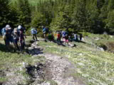 Bei bestem Wetter folgten wir von Lumberg aus dem Weg zum Aggenstein, ließen diesen nach Erreichen der Anhöhe aber links liegen und wendeten uns nach Osten. Den westlichen Gratrücken des Brentenjochs empor folgten wir auf schmalem Pfad dem Tannheimer Höhenweg zur Achsel.  Immer wieder an den Abbrüchen der Nordflanke entlang erreichen wir den Gipfel. Zu dieser Jahreszeit blühen hier Aurikel