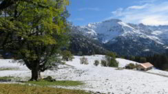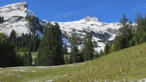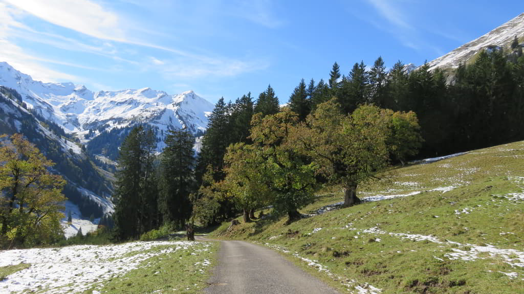 Von da ging es moderat steigend in 1.5 Std gemütlich hinauf zur Hütte. Teilweise war der Boden schon gefroren und im oberen Teil leicht mit Schnee bedeckt.