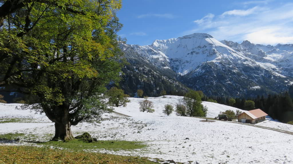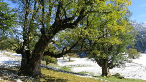 Nach der Einkehr gingen wir weiter zur Käseralm und bestaunten dabei die jahrhunderte alten Ahornbäume. Auch von der Käseralm kann man das grandiose Panorama genießen.