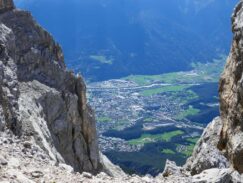 Auf Grund von Fehlinformationen aus dem Internet, glaubten wir, dass uns zu wenig Zeit bleibt noch die 2. Sektion des Klettersteigs zu begehen und stiegen deshalb zur Bergstation der Nordkettenbahn, der Seegrube, ab. Der Vorteil war, dass wir noch gemütlich, hoch über Innsbruck, mit Strudel und Getränken die tollen Tage ausklingen lassen konnten.