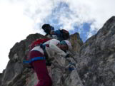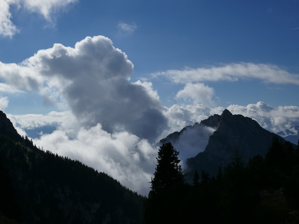 Am Samstag statteten wir dem Rofangebirge noch einmal einen Besuch ab, fuhren mit der Bahn auf 1834 m hinauf und machten uns auf den Weg zur Haidachstellwand. Da der Klettersteig dort keine D – Stellen aufweist, war er auch für die etwas armschwächeren in der Gruppe machbar. Trotzdem nötigte die Steilheit des Steiges uns doch einen gewissen Respekt ab. Durch die Restwolken der vergangenen Schlechtwetterfront ergaben sich grandiose Szenerien, vor allem für den Fotografen. Beim anschließenden Übergang zu Seekarlspitze und dem Spieljoch kamen dann noch die Gipfelsammler auf ihre Kosten.
