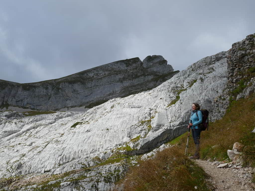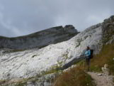 Am Freitag hatte sich das Wetter gebessert und so bestiegen wir den höchsten Gipfel des Rofan, den Hochiss, von Buchau aus. Vorbei am Dalfazer Wasserfall und der schönen Dalfazer Alm stiegen wir zum steinernen Törl an und erreichten über den Streichkopf nach 1440 Hm den Gipfel des Hochiss. Im Abstieg liefen wir im Bogen über einem weiten Kalkkessel hinunter zur Erfurter Hütte, um dort eine Schwarzwälder Kirschtorte oder Ähnliches zu vertilgen. Zur Schonung der Gelenke nutzten wir die Rofanbahn für den „Abstieg“ ins Tal.