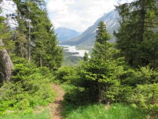 Nach ausgiebiger Rast, vielen Fotos und Verzehr der mitgebrachten Brotzeit ging der Abstieg über einen schmalen, aber gut begehbaren Bergsteig runter zur Straße nach Vorderhornbach und ein kurzes Stück auf der Straße zur Lechbrücke und in ca. 1-1/4 Stunde zurück zum Auto.