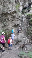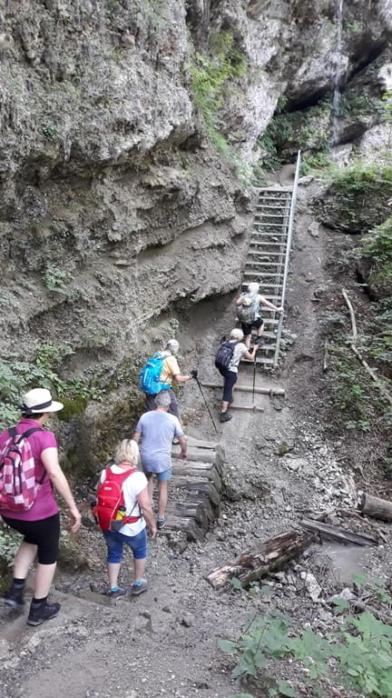 Am Parkplatz unterhalb des Wassserfalls ging es los und über ca. 200 Treppen hinauf, immer entlang des beeindruckenden Wasserfalls. Oberhalb des Wasserfalls wanderten wir auf schmalen Steigen und über Wiesen weiter zum Berghotel Sonnenklause, dem höchsten Punkt der Wanderung.