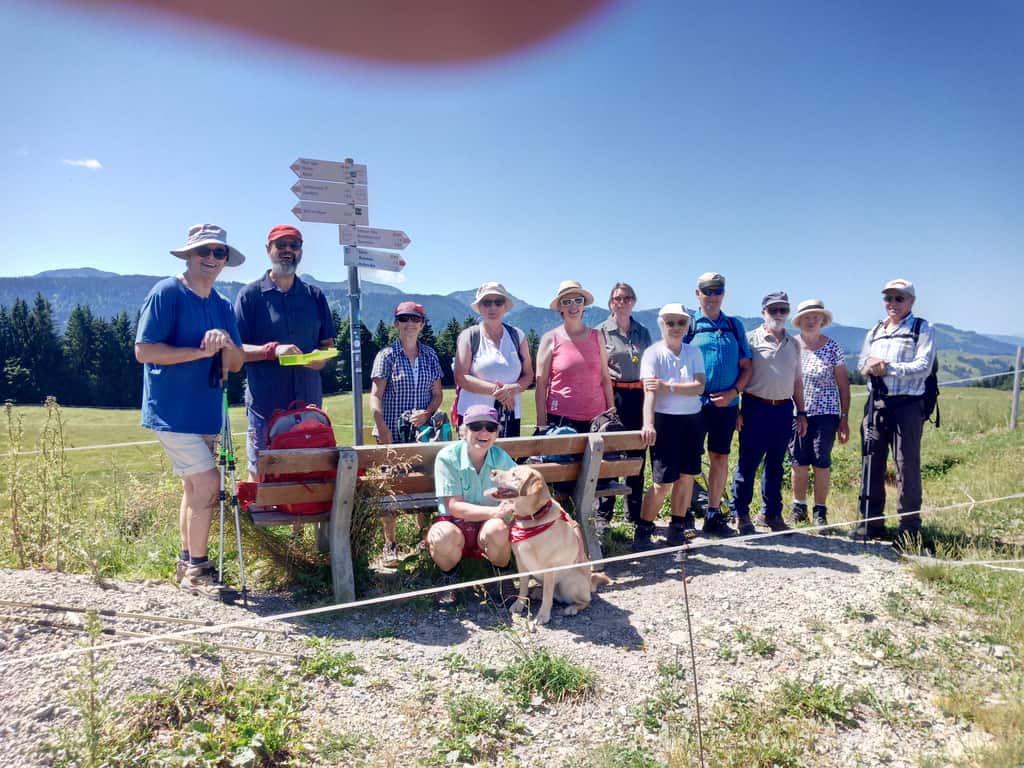 Um 7.30 trafen sich die 12 Teilnehmer bei strahlendem Sonnenschein beim Holler und fuhren gemeinsam nach Bühl am großen Alpsee und von da um 9.02 mit dem Bus bis Wiedemannsdorf.