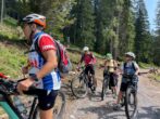 Nun noch eine kurzer Strecke bis zum Abzweig „Fallerschein“ und dann weiter bis zum Almdorf, wo wir mit einem Super-Blick auf die Tiroler Bergwelt belohnt wurden und unsere verdiente Brotzeit einnehmen durften.