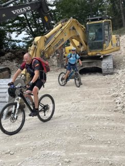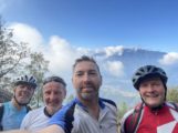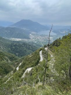 Nachdem wir am Donnerstagabend die Räder und das Gepäck verladen hatten, ging es am nächsten Morgen bei Temperaturen nahe dem Nullpunkt und Regenneigung Richtung Bella Italia. In Levico angekommen, starteten wir zu unserer ersten Tour: auf einer fast unbefahrenen, mit ca. 10% Steigung angenehm zu fahrenden Strecke ging es Richtung Vetriolo Terme, das eigentliche Ziel des Tages. Oben angekommen, beschlossen wir spontan, zur Malga (Alpe) Masi weiterzufahren und dort einzukehren. Frisch gestärkt packten wir nochmals 200 – 300 hm obendrauf. Auf dem La Bassa Sattel konnte man über den Monte Panarotta (2002 m) oder direkt zum Cima Storta (1872 m) radeln. Das jetzige Skigebiet war im ersten Weltkrieg Frontlinie und ist jetzt Teil des Sentiero della Pace (Friedensweg). Unsere Gruppe teilte sich und schließlich fuhren wir wieder gemeinsam in steiler Abfahrt zum Hotel. Am nächsten Tag stand der Cima di Vezzana auf dem Programm. Vom Hotel ging es in schneller Fahrt 200 hm bergab und südwärts zum Kaiserjägerweg, der in endlosen Serpentinen zum Ankunftspunkt des Giro d`Italia  Montevere führt. Da sich das Wetter zusehends eintrübte, änderten wir die Route dementsprechend. Wir fuhren leicht bergauf, an den Nordwänden des Monte Cimon entlang und kamen dann an einen angelegten Trail, der zum Skigebiet Lavarone gehört. Die Skiliftbetreiber entdecken immer mehr das Down Hill-Fahren, um damit das Sommerloch zu stopfen. Eine kurze Einkehr zum Aufwärmen stellte sich letztlich als keine so gute Idee heraus, denn währenddessen begann es zu regnen! Wir wählten deshalb den kürzesten Weg und fuhren über Carbonare Richtung Calcernica am Caldonazzosee. Zum Glück wurde das Wetter besser, so dass wir noch eine der berühmten „Bernhardschen Schleifen“ fuhren … bis dann der Weg gesperrt war.  Am See angekommen, fuhren wir über Caldonazzo ins Zentrum von Levico, wo wir einkehrten und uns aufwärmten. Den Abend verbrachten wir beim Streetfood Festival mit Life-Musik (gewöhnungsbedürftig) in Levico. Am Sonntag meldete der Wetterbericht wechselhaftes Wetter