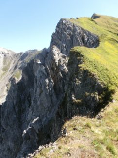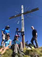Vom Edelweißhaus in Kaisers stiegen wir zu sechst bei bestem Bergwetter am Muttekopf vorbei hinauf zum Westgrat der Rotschrofenspitze. Ab dem Rotschrofenkopf wiesen nur noch Trittspuren über Steilgras und Felsschrofen entlang der Nordabbrüche sehr luftig zum Gipfel. Hier sind Schwindelfreiheit und absolute Trittsicherheit Voraussetzung. Am Gipfelkreuz belohnten uns Brotzeit und eine fantastische Aussicht. Danach ging es noch einmal hochkonzentriert über den teilweise ausgesetzten Südgrat hinunter ins Falmedonjoch. Der weitere Abstieg führte dann gemütlich über den Wilden Kaiser zurück nach Kaisers.