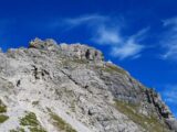 , stiegen wir erst kurz weglos, dann auf Pfadspuren südlich der Strindenschartenköpfe zur Kammhöhe empor. Hier kamen wir in die angenehme Herbstsonne, so dass wir nun sommerlich angezogen dem herrlichen Höhenweg folgen konnten. So trafen wir bald auf den Normalweg, der mit Stahlseilen versichert zum Gipfel führt. Eigentlich rechneten wir mit weniger Leuten am Gipfel, aber die Marktoberdorfer hatten die gleiche Alpenvereinstour am gleichen Tag im Programm und so mussten wir uns den Gipfel teilen. Trotzdem genossen wir in Ruhe die Rundsicht auf u.a. Tannheimer Berge und Lechtaler Alpen. Der Abstieg erfolgte über den Normalweg hinunter zur Gräner Ödenalpe, an der wir nicht vorbeilaufen konnten ohne einzukehren. Von hier ging es hinab ins Strindental und zurück zum Ausgangspunkt.