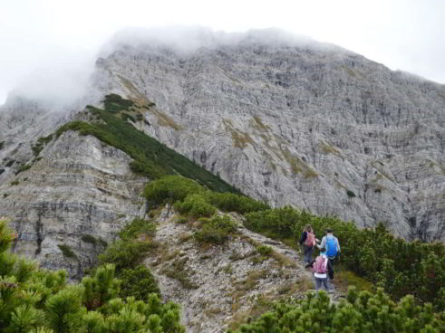 Gut gestärkt und guter Dinge spazierten wir anschließend über Grashänge und Latschenbuschwerk hinab zum Sattel und zum Ausgangspunkt zurück.