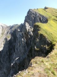 Vom Edelweißhaus in Kaisers stiegen wir zu sechst bei bestem Bergwetter am Muttekopf vorbei hinauf zum Westgrat der Rotschrofenspitze. Ab dem Rotschrofenkopf wiesen nur noch Trittspuren über Steilgras und Felsschrofen entlang der Nordabbrüche sehr luftig zum Gipfel. Hier sind Schwindelfreiheit und absolute Trittsicherheit Voraussetzung. Am Gipfelkreuz belohnten uns Brotzeit und eine fantastische Aussicht. Danach ging es noch einmal hochkonzentriert über den teilweise ausgesetzten Südgrat hinunter ins Falmedonjoch. Der weitere Abstieg führte dann gemütlich über den Wilden Kaiser zurück nach Kaisers.