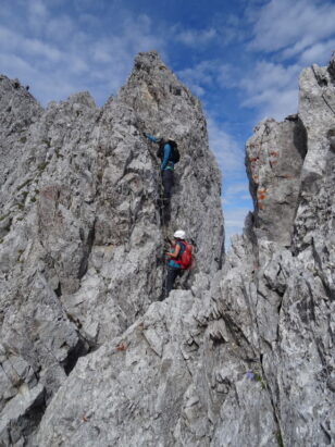 17.09.2023 – Seegrubenspitze 2350 m, Östliche Kaminspitze 2435 m, Westliche Kaminspitze 2435 m, Kemacher 2480 m. 1.Sektion des Innsbrucker Klettersteigs B/C, Karwendelgebirge