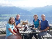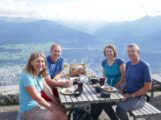 Auf Grund von Fehlinformationen aus dem Internet, glaubten wir, dass uns zu wenig Zeit bleibt noch die 2. Sektion des Klettersteigs zu begehen und stiegen deshalb zur Bergstation der Nordkettenbahn, der Seegrube, ab. Der Vorteil war, dass wir noch gemütlich, hoch über Innsbruck, mit Strudel und Getränken die tollen Tage ausklingen lassen konnten.