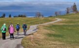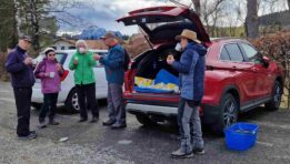 Geplant war eigentlich eine knackige Winterwanderung mit Frost und viel Schnee, doch die Wettermacher lieferten fast warmes und teilweise sonniges Frühlingswetter. Der Winter ist halt auch nicht mehr so richtig planbar. So wanderten wir gemütlich vom Roßhauptener Wettebad nach Nordwesten zwischen Stockachbichel und Wasenmoos über den Brettlesweg zu einem Brückerl ins Tal der Schmutter. Am anderen Ufer ging es nun nach Osten unterhalb der Kellerhalde vorbei am Trinkwasser Reservoir zum einsamen Jägerhäusl. Hier schwenkten wir nach Süden und stiegen über mittelsteile Hänge zum Gipfel des Fahrenbergs. Beim Gipfelbucheintrag waren wir mächtig erstaunt, dass den ersten Bucheintrag vor Jahren unser Bernhard Lippert geschrieben hat. Nach einer flinken Brotzeit mit Panoramabestimmung ging es nun durch die Hölle hinunter Richtung Riedle und zurück zum Wettebad. Dort öffnete sich ein Kofferraum für´s „Tischlein deck dich“ mit Krapfen und Glühwein. Nach Stärkung und Ratsch ging es dann wieder zufrieden nach Hause.