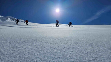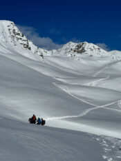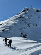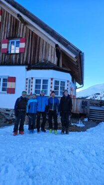 Die Pizzinihütte im Ortlergebiet war schon gebucht, alles schien klar zu sein, doch die Wetteraussichten und Lawinenlageberichte wurden immer schlechter. So beschlossen wir zwei Tage zuvor, die Tour zu ändern und nördlich vom Alpenhauptkamm zu bleiben. Das gestaltete sich aber schwieriger als gedacht. Nach unzähligen Telefonaten fanden wir auf der Potsdamerhütte ein Plätzchen für eine Nacht. So starteten wir am Freitag, den 8.3.202, um 6 Uhr früh bei bestem Wetter ins Sellrain. Die ersten vier Kilometer hieß es Ski tragen bis zum Bergheim Fotsch. Ab hier war die Straße nicht mehr geräumt und wir konnten die Ski anlegen. Wir folgten dem Fotscher Bach und einigten uns, auf den Wildkopf mit 2719 m zu gehen. Es war frisch gespurt und so gewannen wir rasch an Höhe … leider war nur bis zu einer Höhe von ca. 2500 m gespurt. In einem Spitzkehrenfestival ging es auf den Grat und von dort ohne Ski weiter zum Gipfel. Hier bewies Frank Steherqualitäten und quälte sich durch den teils hüfthohen Schnee. Zurück am Skidepot machten wir erst Brotzeit und fuhren dann bei bestem Pulver ab. Nach kurzem Gegenanstieg zur Hütte waren dann 1700 hm geschafft. Wir verbrachten einem netten Hüttenabend mit zwei netten Altöttingern, gutem Essen und viel Lachen. Am Samstag nahmen wir den Roten Kogel mit 2832 m in Angriff, laut eines Führers aus den 60er Jahren gar die schönste Skitour Tirols. Beim Start fragte uns ein junger Mann, wo wir denn herkämen, es war unser Mitglied Andreas Neureuther mit seiner Frau … ein Verwandter von Andrea Schlitzer, so klein ist die Welt. Bei wolkenlosem Himmel kamen wir sehr gut voran und waren zeitig auf dem Gipfel. Da es recht windig war, fuhren wir schnell, wie schon am Vortag, bei genialem Pulver ab. Wir beschlossen, dass man bei diesem Schnee nochmal auffellen müsste und bestiegen den „Auf Sömer“, wie der Gipfel in der nördlichen Verlängerung des Roten Kogels heißt. 350 – 400 hm galt es noch zusätzlich zu meistern, aber die Abfahrt entschädigte alles. Wir fuhren über unverspurte Hänge Richtung Almindalm und kamen am Bergheim Fotsch heraus. Jetzt hieß es wieder vier Kilometer lang die Ski zu tragen. Es war eine tolle Tour mit sagenhaft gutem Schnee. Die Potsdamer Hütte ist zwar klein, aber sehr empfehlenswert und es war sicherlich nicht das letzte Mal, dass wir hier waren. Teilnehmer waren: Andrea und Frank Schlitzer, Toni Ott, Stefan Vohl und Bernhard Lippert.