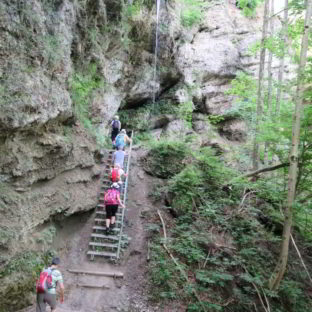 Am Parkplatz unterhalb des Wassserfalls ging es los und über ca. 200 Treppen hinauf, immer entlang des beeindruckenden Wasserfalls. Oberhalb des Wasserfalls wanderten wir auf schmalen Steigen und über Wiesen weiter zum Berghotel Sonnenklause, dem höchsten Punkt der Wanderung.